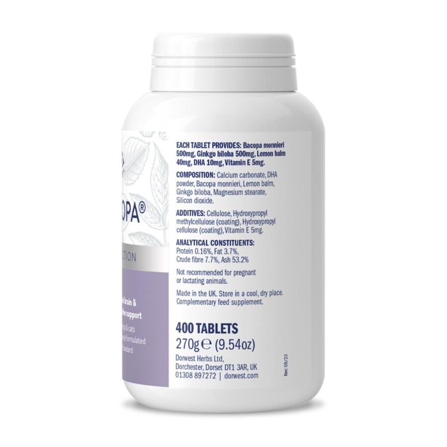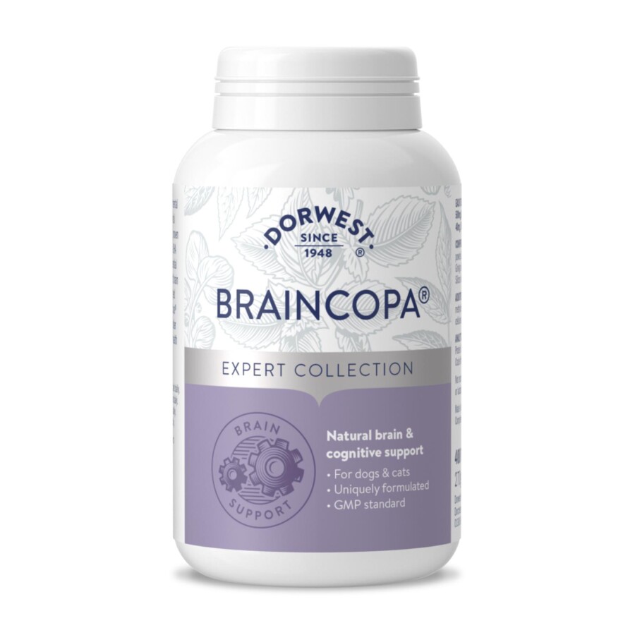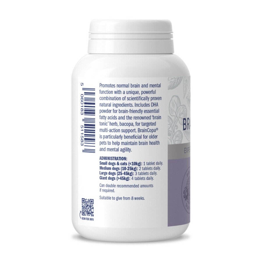 BrainCopa®’s unique, powerful formulation helps to keep your pet’s mind agile by promoting normal brain and mental function, which can be especially useful in older pets experiencing cognitive decline. With a range of scientifically proven natural ingredients, including DHA powder and bacopa, BrainCopa provides targeted multi-action support – giving you and them peace of mind.