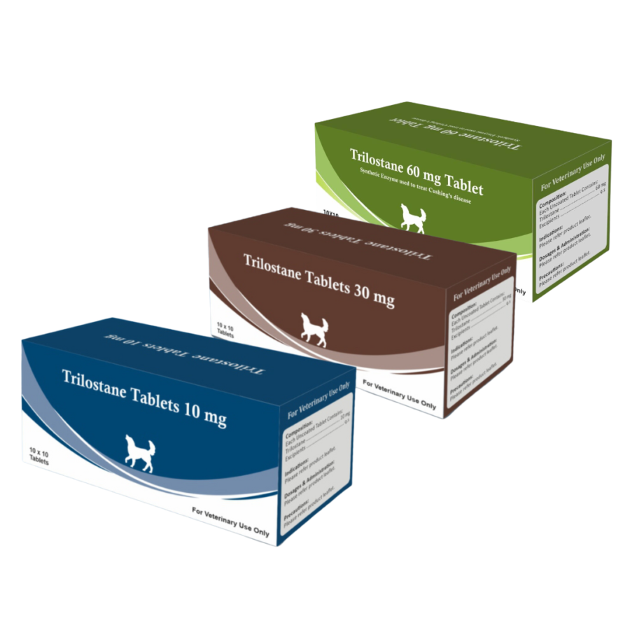 Trilostane is prescribed for the management of hyperadrenocorticism (Cushing’s disease) in dogs and cats. It is also used in dogs for the treatment of alopecia X, a hormone-related hair loss condition.